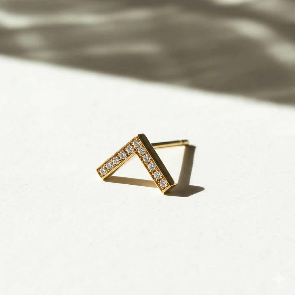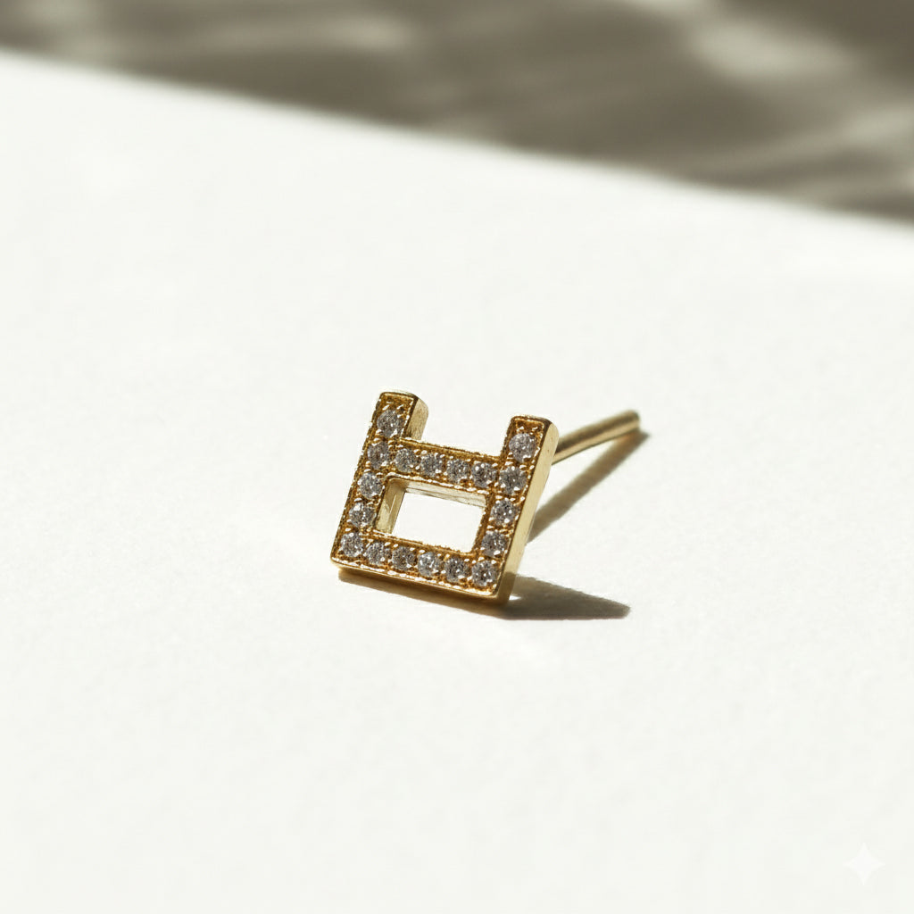 Sold as a pair of 5mm character gold earrings with pavé diamonds.