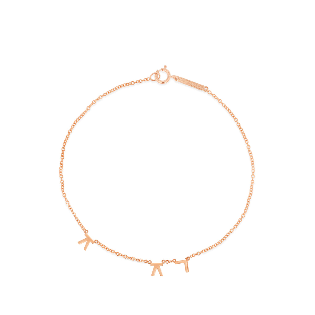Three 5mm 14-karat gold characters on a 16-inch link chain. Other lengths available via special order.