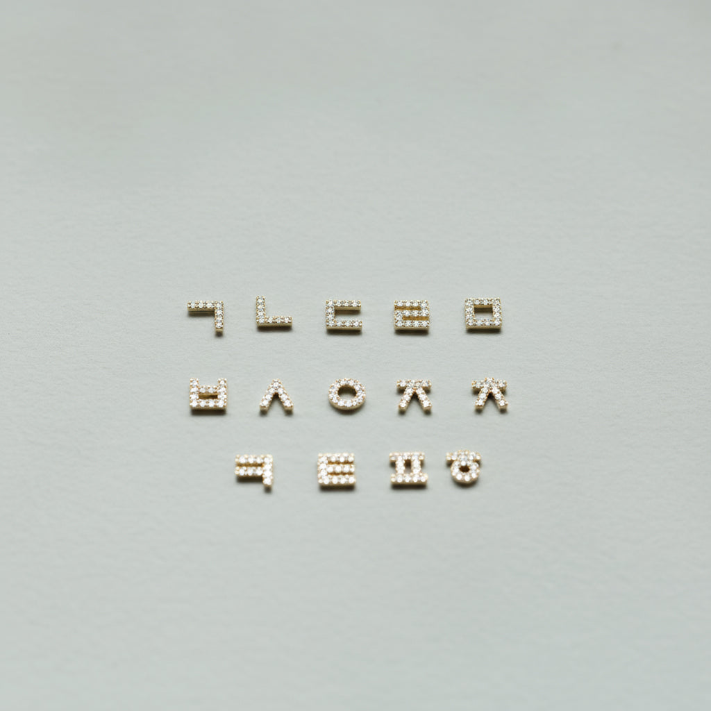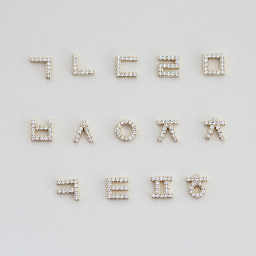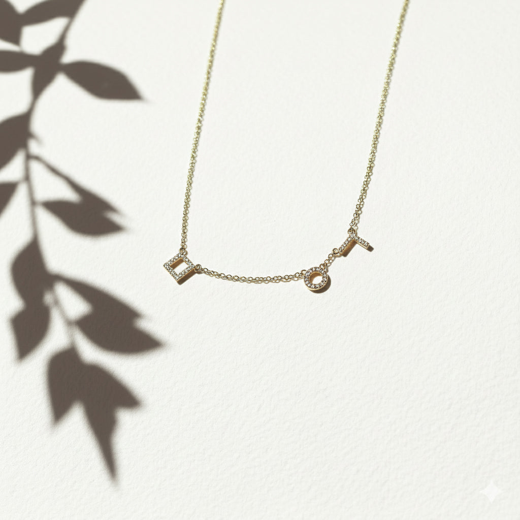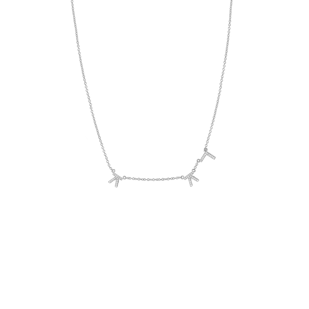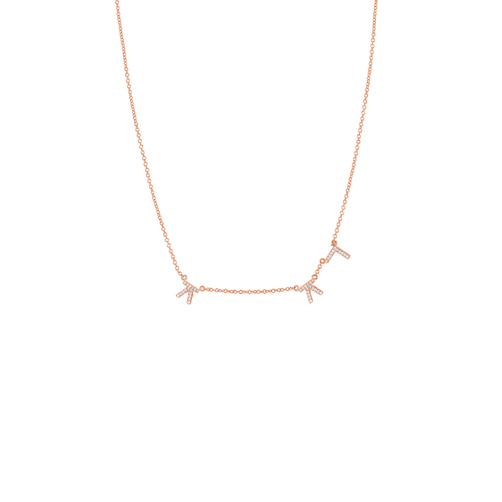 Three 5mm 14-karat gold characters with pavé diamonds on a 16-inch link chain. Other lengths available via special order.